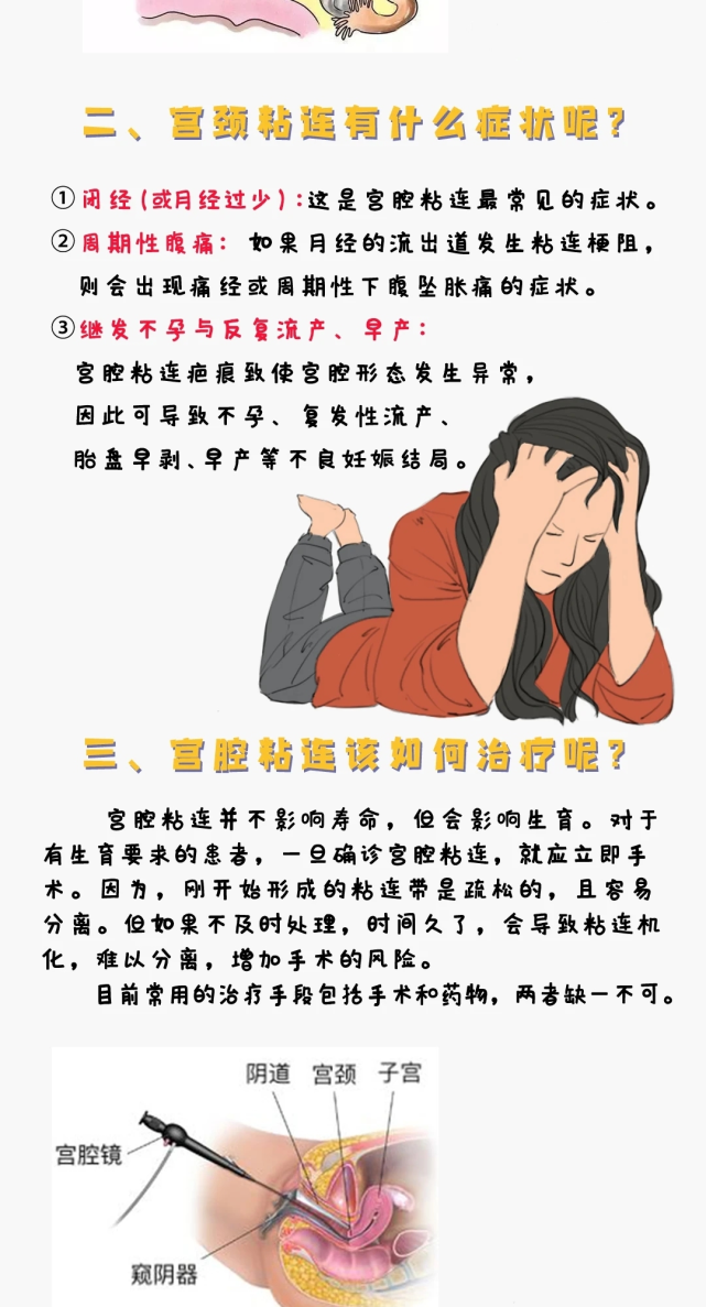 4、評估生育能力:長期不孕或反復(fù)流產(chǎn)可能與宮腔粘連有關(guān),如有相關(guān)情況,應(yīng)及時就醫(yī)檢查。