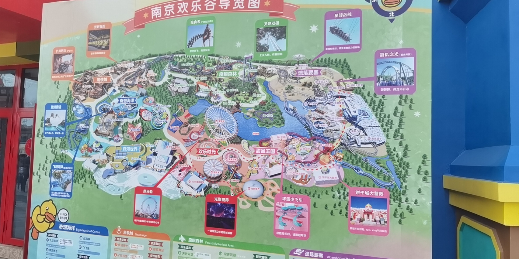 南京歡樂(lè)谷分為多個(gè)主題區(qū)域,包括歡樂(lè)世界、夢(mèng)幻谷、未來(lái)之城等,每個(gè)區(qū)域都有獨(dú)特的游樂(lè)設(shè)施和娛樂(lè)項(xiàng)目,適合不同年齡段的游客,園區(qū)內(nèi)還有各種餐飲設(shè)施、商店和休息區(qū),為游客提供便捷的服務(wù)。