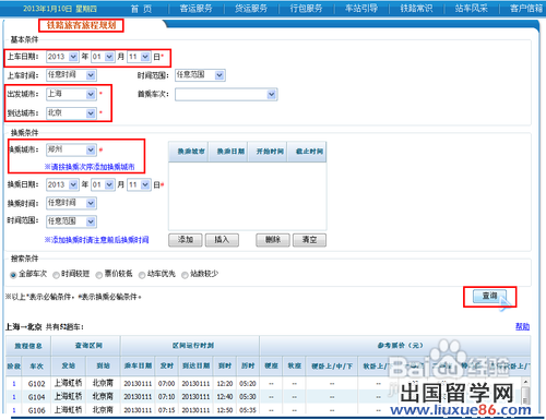 輸入出發(fā)地、目的地和日期后,點擊查詢,即可看到相關(guān)的列車時刻表。