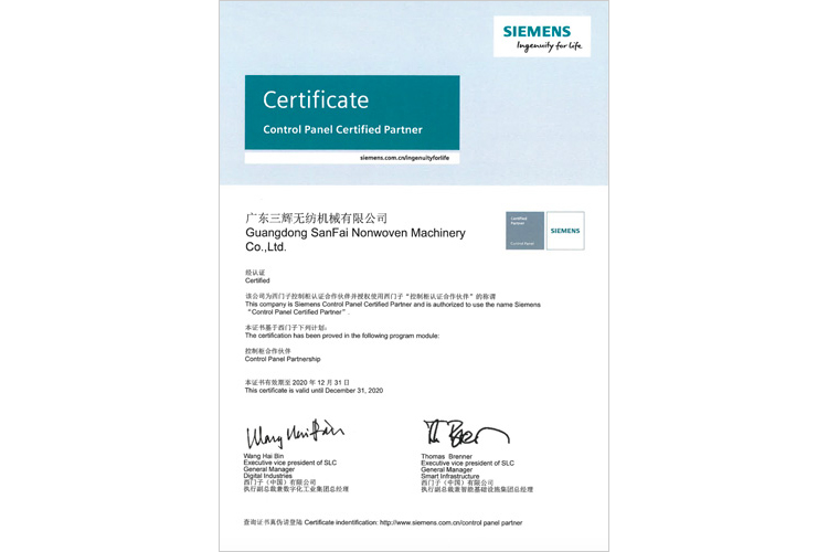 西門子控制柜合作伙伴證書